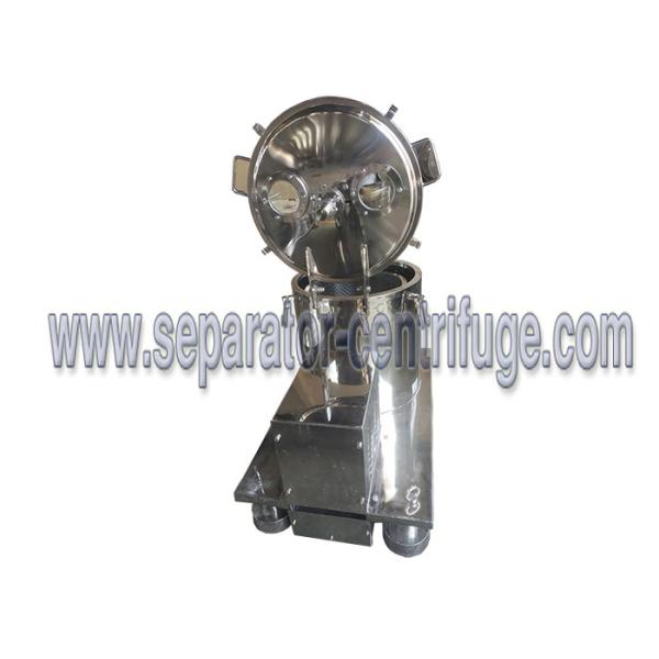 The PPTD centrifuge is top discharging, hermetic closure type equipment. The material is fed into the drum through the feeding pipe on the hermetic closure casing; under the action of the centrifuge force field, the liquid-phase passes through the filter medium and the discharged out of the machine, while the solid-phase material is retained inside the drum and, after the machine is stopped, the material is discharged from the top. The centrifuge has such features as smooth running, easy & convenient operation as well as conducting feeding, washing and dehydrating under the state of hermetic closure, etc.
